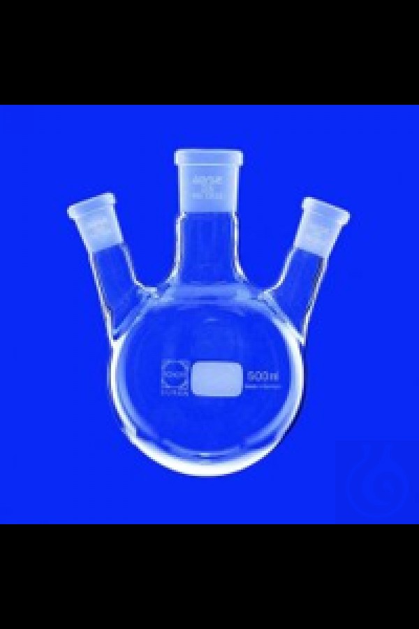 Yuvarlak Tabanlı Matara, Üç Boyunlu, Yan Boyunlar Açılı, C. Boyun NS 24/29 Yan Boyun...